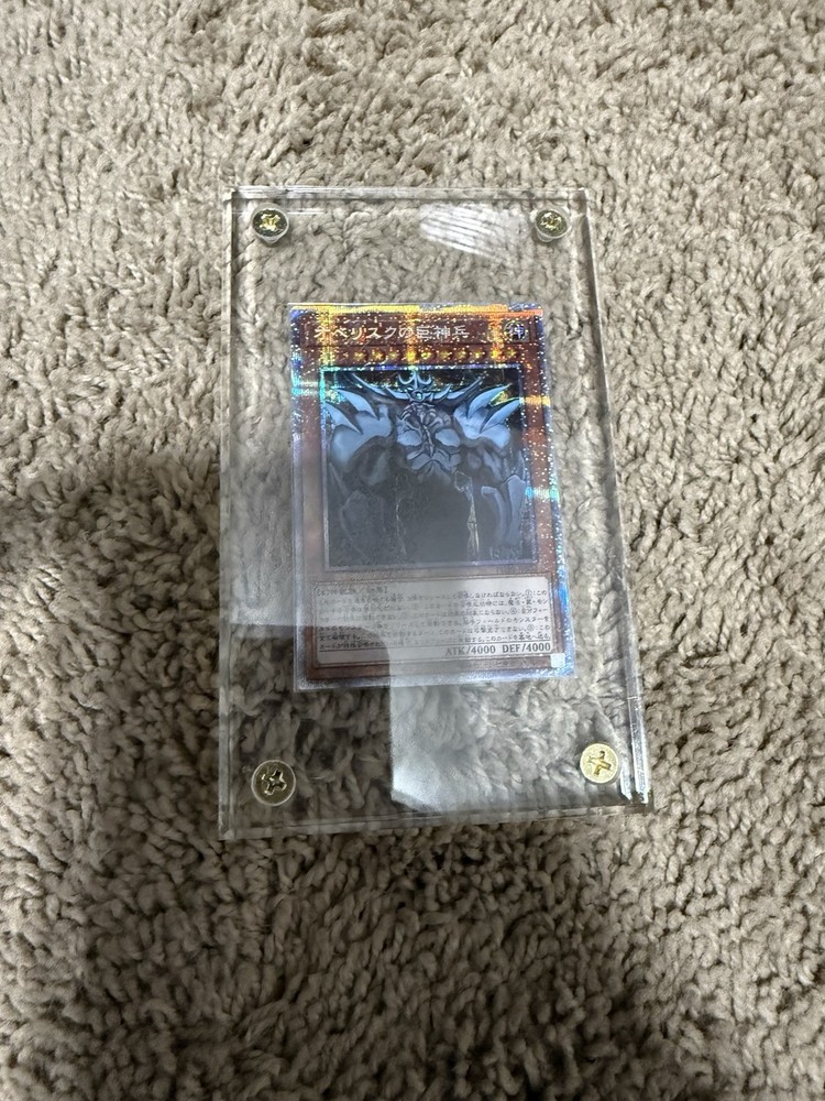 This is a Japanese Yugioh card featuring Obelisk the Tormentor in Prismatic Secret Rare rarity from the Prismatic God Box set released on December 19, 2020. The card is a Divine-Beast/Effect creature with 4000 Attack/Power and 4000 Defense/Toughness. It is a Level 10 monster with various effect types. The card is near mint or better, ungraded, and not autographed. It is manufactured by Konami and part of the Yu-Gi-Oh! TCG game.