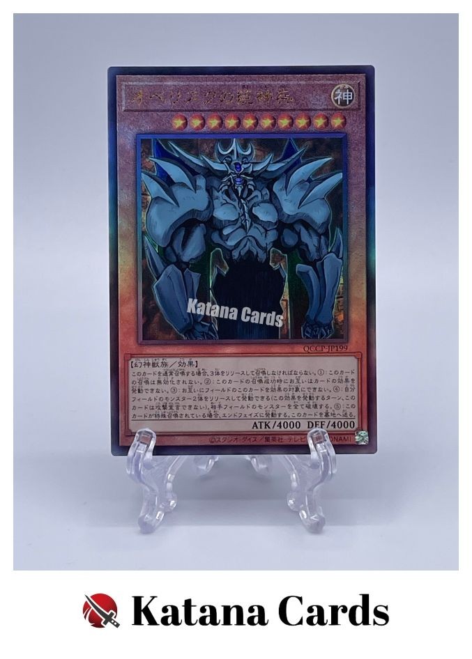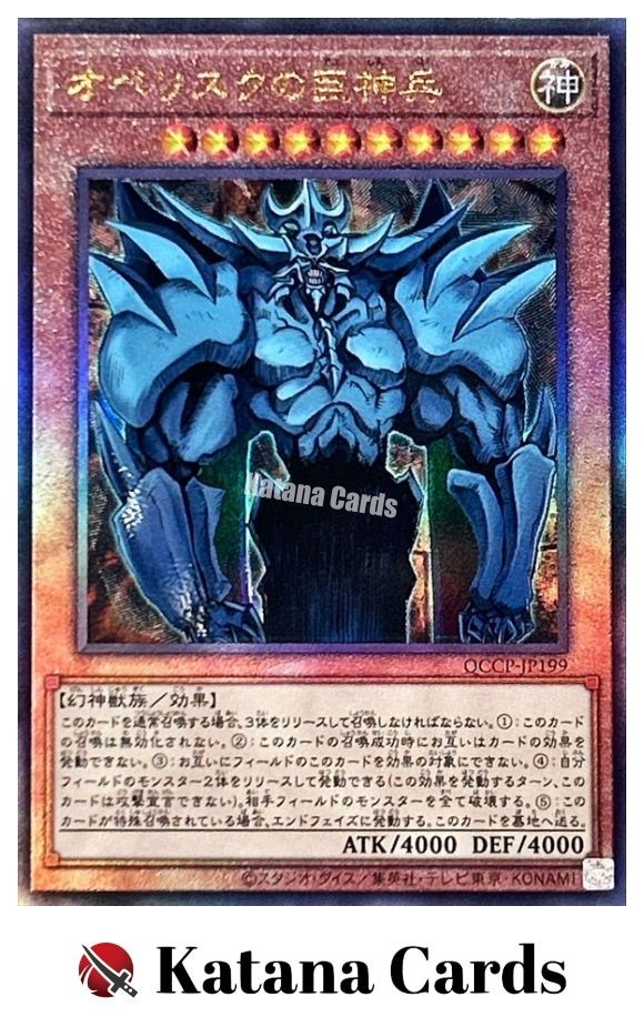 Yugioh Cards | Obelisk the Tormentor Ultimate Rare | QCCP-JP199 Japanese C ondition Near Mint to Excellent Yugioh Cards Check our Yugioh cards here. D iscounts!!! Buy more than 2 cards in my store, Save 3 - 5% off for each cards. Yugioh Cards Check our Yugioh cards here. Discounts are applied automatically by simply adding the product to your cart! If the discount is not applied automatically due to eBay's system error, please inform us of the "Discount Error" in the message after purchasing the item. We will manually apply the discount based on the number of items purchased. S hipping We usually ship within 3 - 5 business days of receiving cleared payment. Economy Shipping - No Tracking Number - It takes 7 - 30 days after shipment. Expedited Shipping - Tracking Number - It takes 3 - 10 days after shipment. If you buy more than 2 cards and choose Expedited Shipping, please select Expedited Shipping for just 1 item. We will ship the items in one package. P ayment We can be contacted at any time through eBay messages if you have any questions, comments or product requests. We will respond to you within 24 hours and do our best to help you out! We encourage our customers to contact us with any questions or concerns! We'd like to be sure you are completely satisfied with your purchase. We do not mark merchandise values below value or mark items as gifts. US and International government regulations prohibit such behavior. I nternational Buyers - Please Note Import duties, taxes, and charges are not included in the item price or shipping cost. These charges are the buyers responsibility. Please check with your country's customs office to determine what these additional costs will be prior to bidding or buying.