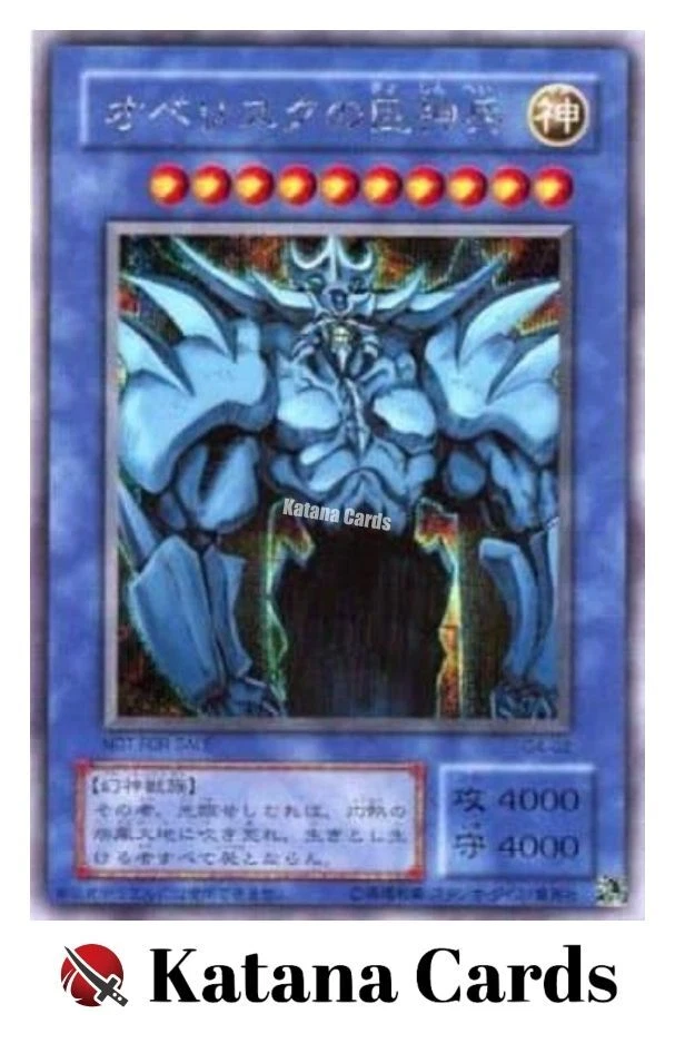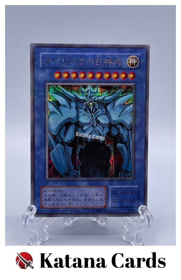 Yugioh Cards | Obelisk the Tormentor (original) Secret Rare | G4-02 Japanese C ondition Near Mint to Excellent Yugioh Cards Check our Yugioh cards here. D iscounts!!! Buy more than 3 cards in my store, Save $2 for each cards. Buy 3 cards, save $6 altogether. Buy 4 cards, save $8 altogether. Buy 5 cards, save $10 altogether and so on. Yugioh Cards Check our Yugioh cards here. Discounts are applied automatically by simply adding the product to your cart! S hipping We usually ship within 3 - 5 business days of receiving cleared payment. Economy Shipping - No Tracking Number - It takes 7 - 30 days after shipment. Expedited Shipping - Tracking Number - It takes 3 - 10 days after shipment. If you buy more than 2 cards and choose Expedited Shipping, please select Expedited Shipping for just 1 item. We will ship the items in one package. P ayment We can be contacted at any time through eBay messages if you have any questions, comments or product requests. We will respond to you within 24 hours and do our best to help you out! We encourage our customers to contact us with any questions or concerns! We'd like to be sure you are completely satisfied with your purchase. We do not mark merchandise values below value or mark items as gifts. US and International government regulations prohibit such behavior. I nternational Buyers - Please Note Import duties, taxes, and charges are not included in the item price or shipping cost. These charges are the buyers responsibility. Please check with your country's customs office to determine what these additional costs will be prior to bidding or buying.