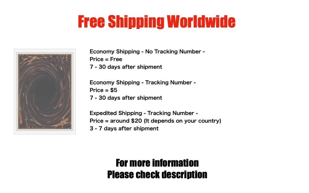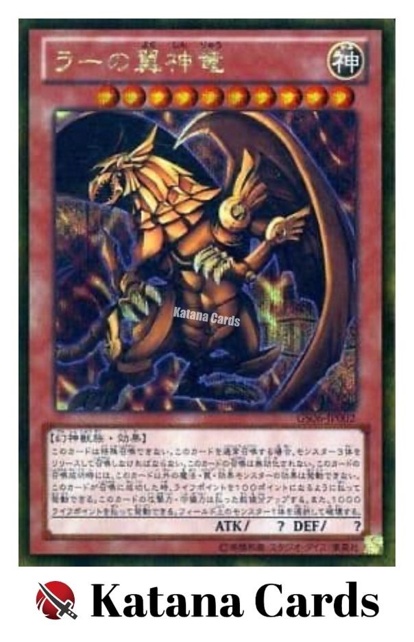 Yugioh Cards | The Winged Dragon of Ra Gold Secret Rare | GS06-JP002 Japanese C ondition Near Mint to Excellent Yugioh Cards Check our Yugioh cards here. D iscounts!!! Buy more than 2 cards in my store, Save 3 - 5% off for each cards. Yugioh Cards Check our Yugioh cards here. Discounts are applied automatically by simply adding the product to your cart! If the discount is not applied automatically due to eBay's system error, please inform us of the "Discount Error" in the message after purchasing the item. We will manually apply the discount based on the number of items purchased. S hipping We usually ship within 3 - 5 business days of receiving cleared payment. Economy Shipping - No Tracking Number - It takes 7 - 30 days after shipment. Expedited Shipping - Tracking Number - It takes 3 - 10 days after shipment. If you buy more than 2 cards and choose Expedited Shipping, please select Expedited Shipping for just 1 item. We will ship the items in one package. P ayment We can be contacted at any time through eBay messages if you have any questions, comments or product requests. We will respond to you within 24 hours and do our best to help you out! We encourage our customers to contact us with any questions or concerns! We'd like to be sure you are completely satisfied with your purchase. We do not mark merchandise values below value or mark items as gifts. US and International government regulations prohibit such behavior. I nternational Buyers - Please Note Import duties, taxes, and charges are not included in the item price or shipping cost. These charges are the buyers responsibility. Please check with your country's customs office to determine what these additional costs will be prior to bidding or buying.