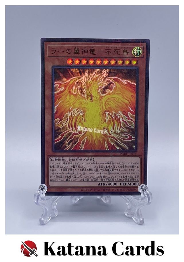 Yugioh Cards | The Winged Dragon of Ra - Immortal Phoenix Millennium Ultra Rare | C ondition Near Mint to Excellent Yugioh Cards Check our Yugioh cards here. D iscounts!!! Buy more than 2 cards in my store, Save 3 - 5% off for each cards. Yugioh Cards Check our Yugioh cards here. Discounts are applied automatically by simply adding the product to your cart! If the discount is not applied automatically due to eBay's system error, please inform us of the "Discount Error" in the message after purchasing the item. We will manually apply the discount based on the number of items purchased. S hipping We usually ship within 3 - 5 business days of receiving cleared payment. Economy Shipping - No Tracking Number - It takes 7 - 30 days after shipment. Expedited Shipping - Tracking Number - It takes 3 - 10 days after shipment. If you buy more than 2 cards and choose Expedited Shipping, please select Expedited Shipping for just 1 item. We will ship the items in one package. P ayment We can be contacted at any time through eBay messages if you have any questions, comments or product requests. We will respond to you within 24 hours and do our best to help you out! We encourage our customers to contact us with any questions or concerns! We'd like to be sure you are completely satisfied with your purchase. We do not mark merchandise values below value or mark items as gifts. US and International government regulations prohibit such behavior. I nternational Buyers - Please Note Import duties, taxes, and charges are not included in the item price or shipping cost. These charges are the buyers responsibility. Please check with your country's customs office to determine what these additional costs will be prior to bidding or buying.