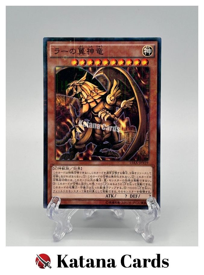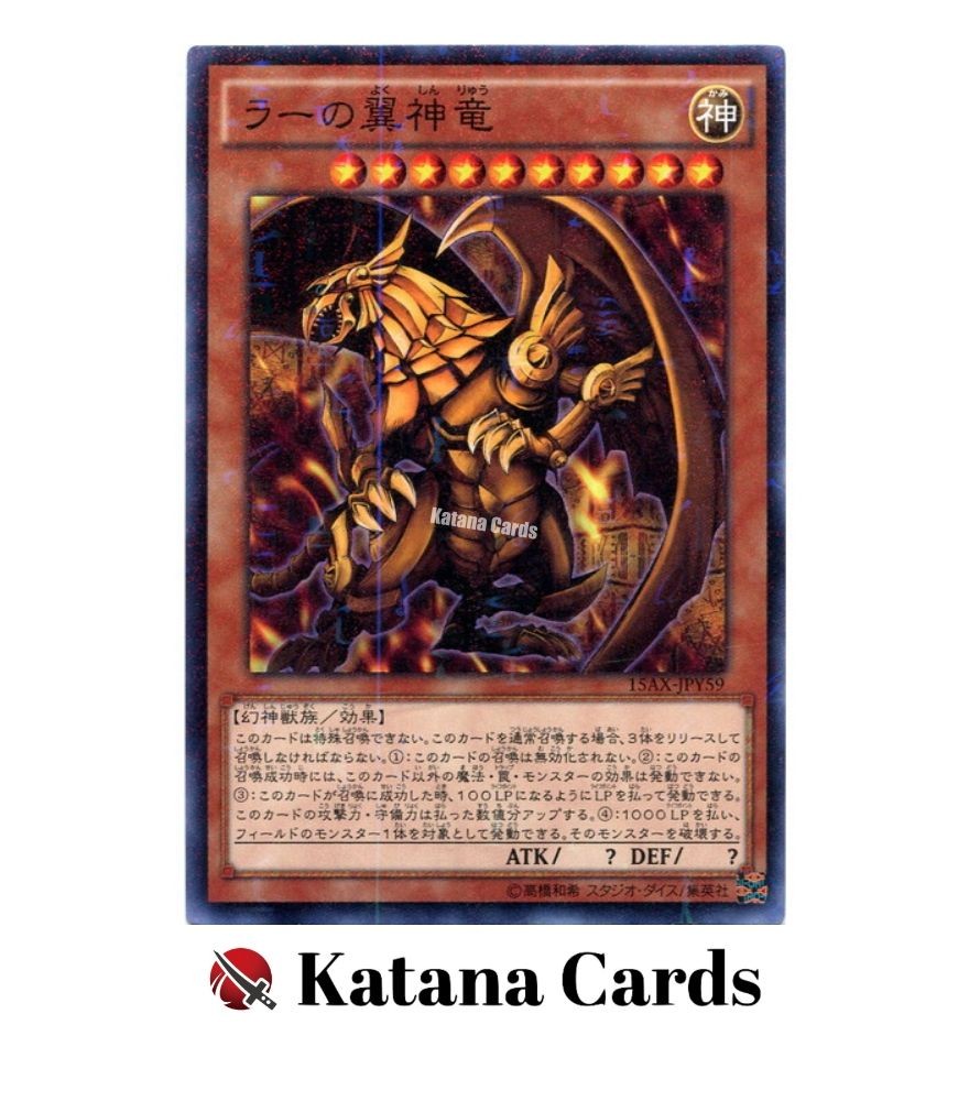 Yugioh Cards | The Winged Dragon of Ra Millennium Rare | 15AX-JPY59 Japanese C ondition Near Mint to Excellent Yugioh Cards Check our Yugioh cards here. D iscounts!!! Buy more than 2 cards in my store, Save 3 - 5% off for each cards. Yugioh Cards Check our Yugioh cards here. Discounts are applied automatically by simply adding the product to your cart! If the discount is not applied automatically due to eBay's system error, please inform us of the "Discount Error" in the message after purchasing the item. We will manually apply the discount based on the number of items purchased. S hipping We usually ship within 3 - 5 business days of receiving cleared payment. Economy Shipping - No Tracking Number - It takes 7 - 30 days after shipment. Expedited Shipping - Tracking Number - It takes 3 - 10 days after shipment. If you buy more than 2 cards and choose Expedited Shipping, please select Expedited Shipping for just 1 item. We will ship the items in one package. P ayment We can be contacted at any time through eBay messages if you have any questions, comments or product requests. We will respond to you within 24 hours and do our best to help you out! We encourage our customers to contact us with any questions or concerns! We'd like to be sure you are completely satisfied with your purchase. We do not mark merchandise values below value or mark items as gifts. US and International government regulations prohibit such behavior. I nternational Buyers - Please Note Import duties, taxes, and charges are not included in the item price or shipping cost. These charges are the buyers responsibility. Please check with your country's customs office to determine what these additional costs will be prior to bidding or buying.
