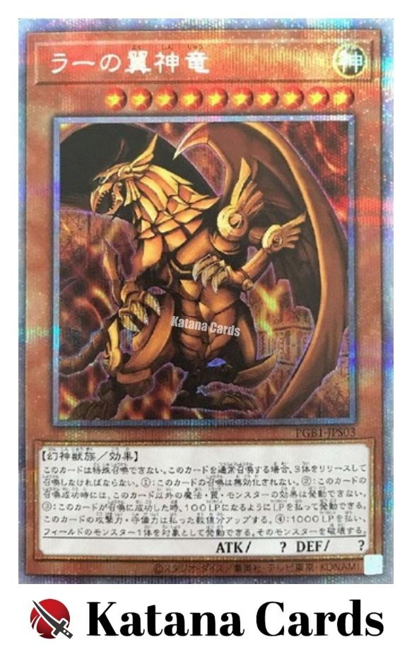 Yugioh Cards | The Winged Dragon of Ra Prismatic Secret Rare | PGB1-JPS03 Japanes C ondition Near Mint to Excellent Yugioh Cards Check our Yugioh cards here. D iscounts!!! Buy more than 2 cards in my store, Save 3 - 5% off for each cards. Yugioh Cards Check our Yugioh cards here. Discounts are applied automatically by simply adding the product to your cart! If the discount is not applied automatically due to eBay's system error, please inform us of the "Discount Error" in the message after purchasing the item. We will manually apply the discount based on the number of items purchased. S hipping We usually ship within 3 - 5 business days of receiving cleared payment. Economy Shipping - No Tracking Number - It takes 7 - 30 days after shipment. Expedited Shipping - Tracking Number - It takes 3 - 10 days after shipment. If you buy more than 2 cards and choose Expedited Shipping, please select Expedited Shipping for just 1 item. We will ship the items in one package. P ayment We can be contacted at any time through eBay messages if you have any questions, comments or product requests. We will respond to you within 24 hours and do our best to help you out! We encourage our customers to contact us with any questions or concerns! We'd like to be sure you are completely satisfied with your purchase. We do not mark merchandise values below value or mark items as gifts. US and International government regulations prohibit such behavior. I nternational Buyers - Please Note Import duties, taxes, and charges are not included in the item price or shipping cost. These charges are the buyers responsibility. Please check with your country's customs office to determine what these additional costs will be prior to bidding or buying.