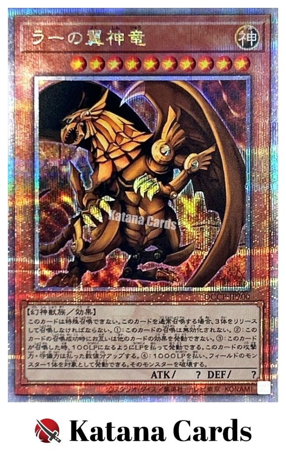 Yugioh Cards | The Winged Dragon of Ra Quarter Century Secret Rare | QCCP-JP200 C ondition Near Mint to Excellent Yugioh Cards Check our Yugioh cards here. D iscounts!!! Buy more than 2 cards in my store, Save 3 - 5% off for each cards. Yugioh Cards Check our Yugioh cards here. Discounts are applied automatically by simply adding the product to your cart! If the discount is not applied automatically due to eBay's system error, please inform us of the "Discount Error" in the message after purchasing the item. We will manually apply the discount based on the number of items purchased. S hipping We usually ship within 3 - 5 business days of receiving cleared payment. Economy Shipping - No Tracking Number - It takes 7 - 30 days after shipment. Expedited Shipping - Tracking Number - It takes 3 - 10 days after shipment. If you buy more than 2 cards and choose Expedited Shipping, please select Expedited Shipping for just 1 item. We will ship the items in one package. P ayment We can be contacted at any time through eBay messages if you have any questions, comments or product requests. We will respond to you within 24 hours and do our best to help you out! We encourage our customers to contact us with any questions or concerns! We'd like to be sure you are completely satisfied with your purchase. We do not mark merchandise values below value or mark items as gifts. US and International government regulations prohibit such behavior. I nternational Buyers - Please Note Import duties, taxes, and charges are not included in the item price or shipping cost. These charges are the buyers responsibility. Please check with your country's customs office to determine what these additional costs will be prior to bidding or buying.