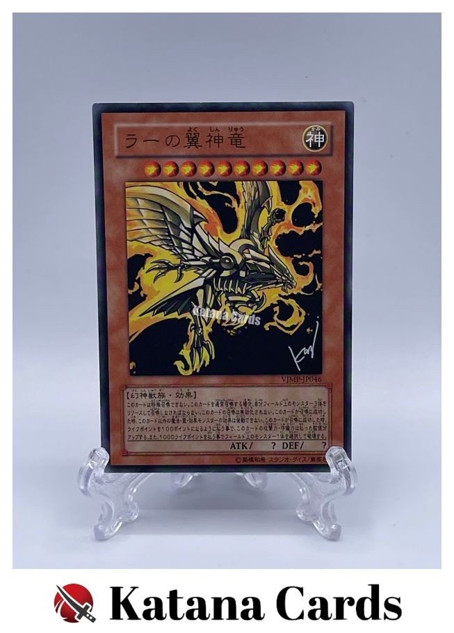 Yugioh Cards | The Winged Dragon of Ra Ultra Rare | VJMP-JP046 Japanese C ondition Near Mint to Excellent Yugioh Cards Check our Yugioh cards here. D iscounts!!! Buy more than 2 cards in my store, Save 3 - 5% off for each cards. Yugioh Cards Check our Yugioh cards here. Discounts are applied automatically by simply adding the product to your cart! If the discount is not applied automatically due to eBay's system error, please inform us of the "Discount Error" in the message after purchasing the item. We will manually apply the discount based on the number of items purchased. S hipping We usually ship within 3 - 5 business days of receiving cleared payment. Economy Shipping - No Tracking Number - It takes 7 - 30 days after shipment. Expedited Shipping - Tracking Number - It takes 3 - 10 days after shipment. If you buy more than 2 cards and choose Expedited Shipping, please select Expedited Shipping for just 1 item. We will ship the items in one package. P ayment We can be contacted at any time through eBay messages if you have any questions, comments or product requests. We will respond to you within 24 hours and do our best to help you out! We encourage our customers to contact us with any questions or concerns! We'd like to be sure you are completely satisfied with your purchase. We do not mark merchandise values below value or mark items as gifts. US and International government regulations prohibit such behavior. I nternational Buyers - Please Note Import duties, taxes, and charges are not included in the item price or shipping cost. These charges are the buyers responsibility. Please check with your country's customs office to determine what these additional costs will be prior to bidding or buying.