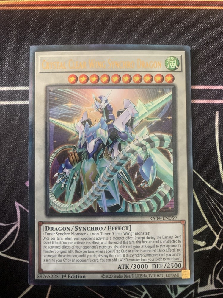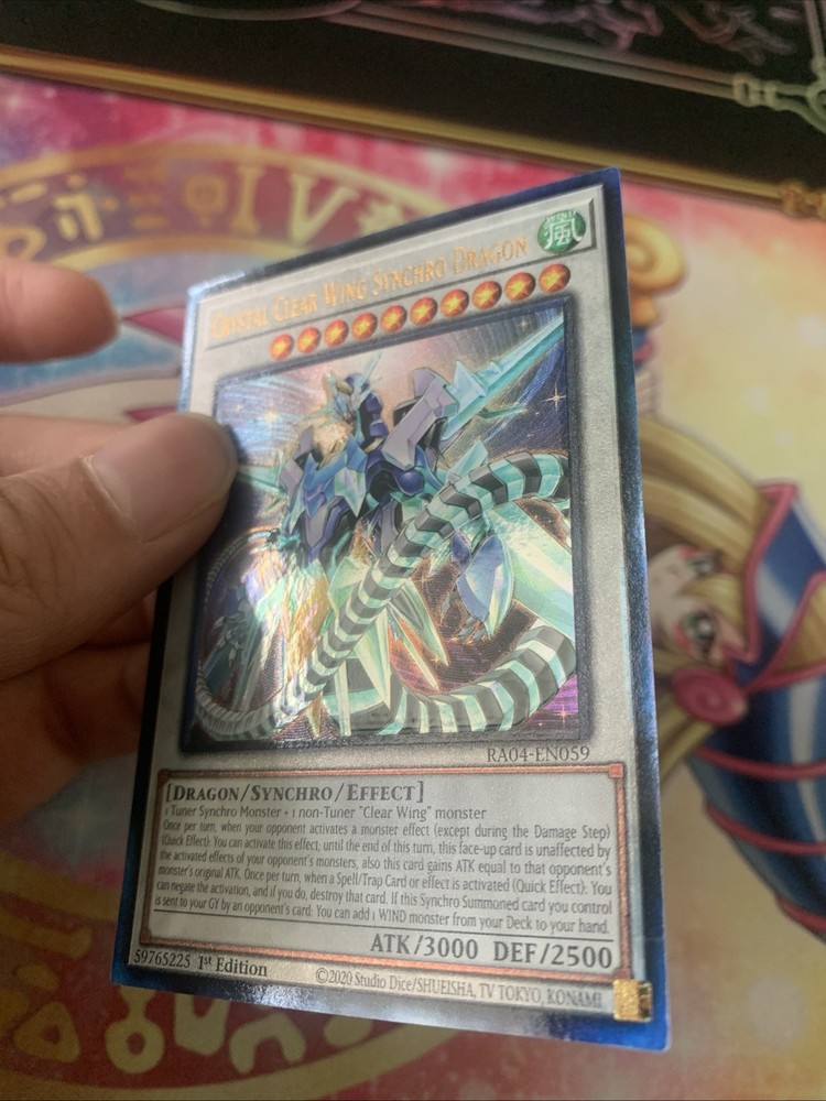 Elevate your Yu-Gi-Oh! TCG collection with the Crystal Clear Wing Synchro Dragon, an Ultimate Rare card that boasts the iconic artistry and strategic depth synonymous with the Yugioh series. Manufactured by Konami, this card features the renowned Yami Yugi and is a must-have for both players and collectors. Its rarity and the inclusion of the sought-after 1st Edition feature make it a standout addition to any deck or display. Presented in English with a Japanese card size, this non-autographed collectible is crafted from premium card stock and originates from the United States. The card, designated as "Overload Fusion" (RA04), is not signed, ensuring its pristine design remains the focal point. Suitable for ages 6 and up, it's an exemplary piece for both seasoned enthusiasts and newcomers to the Yu-Gi-Oh! universe.