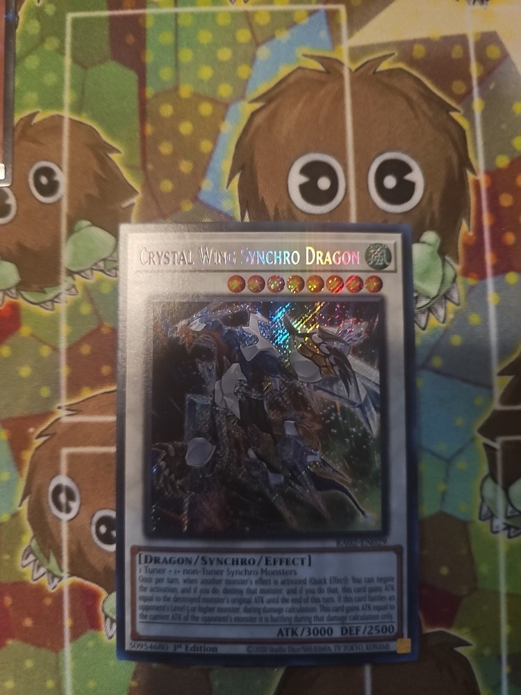 The Yugioh Crystal Wing Synchro Dragon Ultra Rare RA02 card is a highly sought-after collectible card game item from the Yu-Gi-Oh! TCG. Manufactured by Konami in the United States in 2023, this Japanese card features Yami Yugi's signature and is a 1st Edition Secret Rare card. The card is of standard Japanese size and is in English language, making it a valuable addition to any Yugioh card collection. Known for its Knight creature type, this card is a speciality item that is sure to appeal to fans and collectors alike.