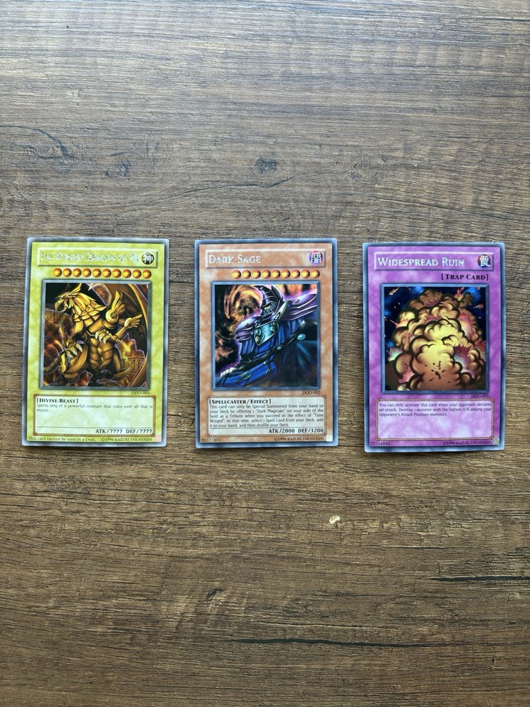 Yugioh Dawn of destiny Xbox Promo 3 card Lot Winged Dragon of Ra, Dark Sage, and Widespread Ruin DOD 001-003 please refer to images for the condition of these cards. These cards are in MN-VLP conditio...