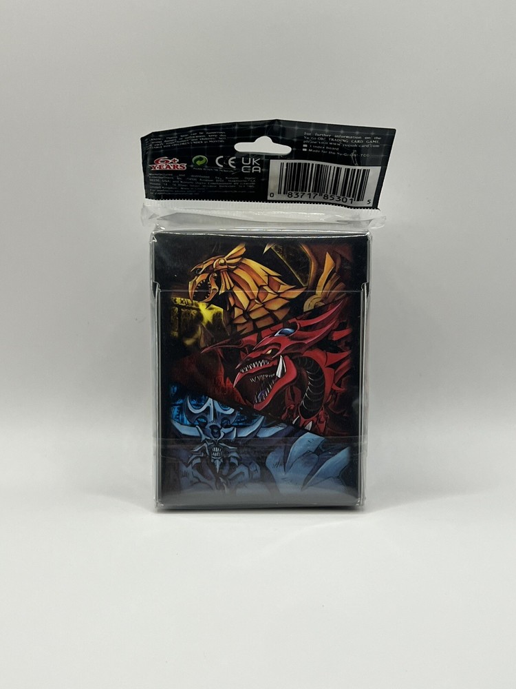 A vintage Yu-Gi-Oh! deck box featuring the iconic Egyptian God Cards—Slifer the Sky Dragon, Obelisk the Tormentor, and Ra—makes for a striking and nostalgic piece. This deck box combines the powerful imagery of these legendary monsters with a classic design, making it a must-have for any collector or duelist who appreciates the history and significance of these cards in the Yu-Gi-Oh! universe.