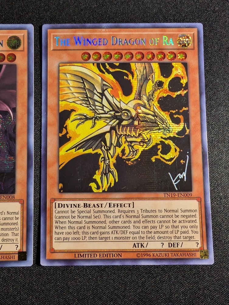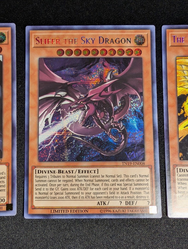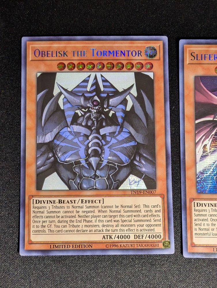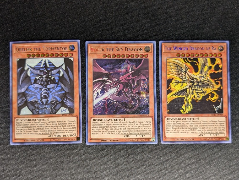 Yugioh - Egyptian God Cards Set Obelisk The Tormentor TN19-EN007 Limited Edition Prismatic Secret Rare LP Slifer The Sky Dragon TN19-EN008 Limited Edition Prismatic Secret Rare LP The Winged Dragon of Ra TN19-EN009 Limited Edition Prismatic Secret Rare LP