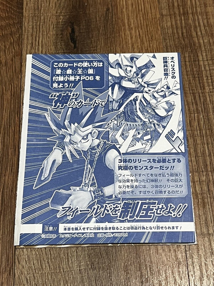 This is a rare and highly sought-after Obelisk the Tormentor card from the Yu-Gi-Oh! TCG. It features a holographic finish and is a Japanese ultra rare promo card, with card number VJMP-JP037. The card is made of high-quality paper and is manufactured by Konami in Japan. The card is perfect for collectors and fans of the Yu-Gi-Oh! TCG, and would make a great addition to any collection. It is recommended for ages 4 and up and is written in Japanese language. Don't miss out on the chance to own this rare and valuable card!
