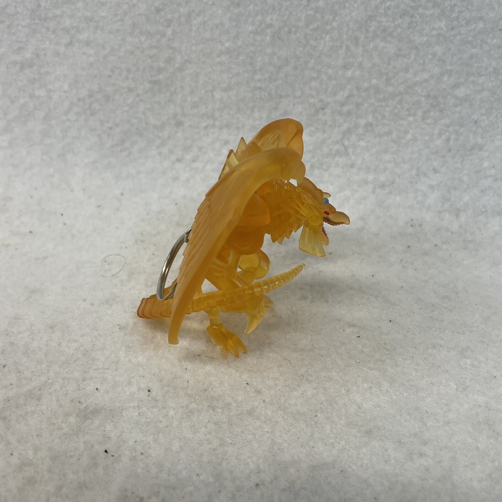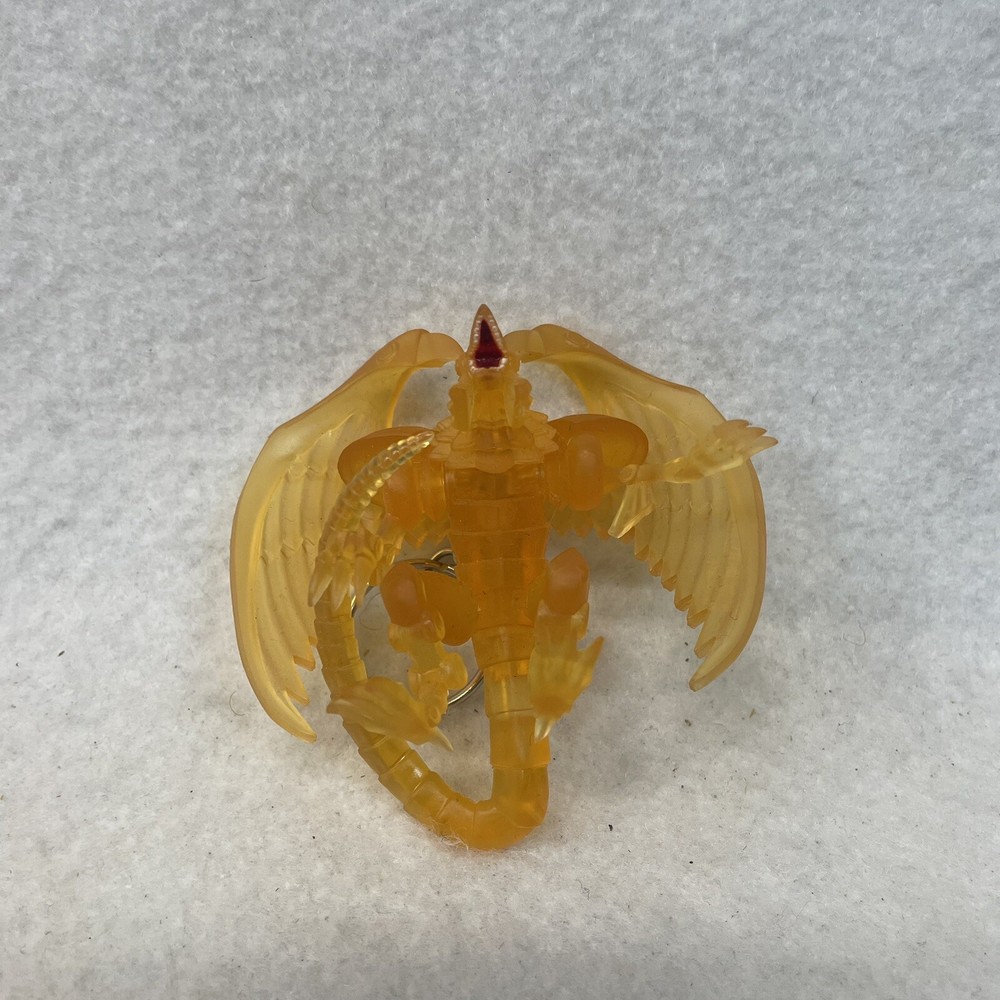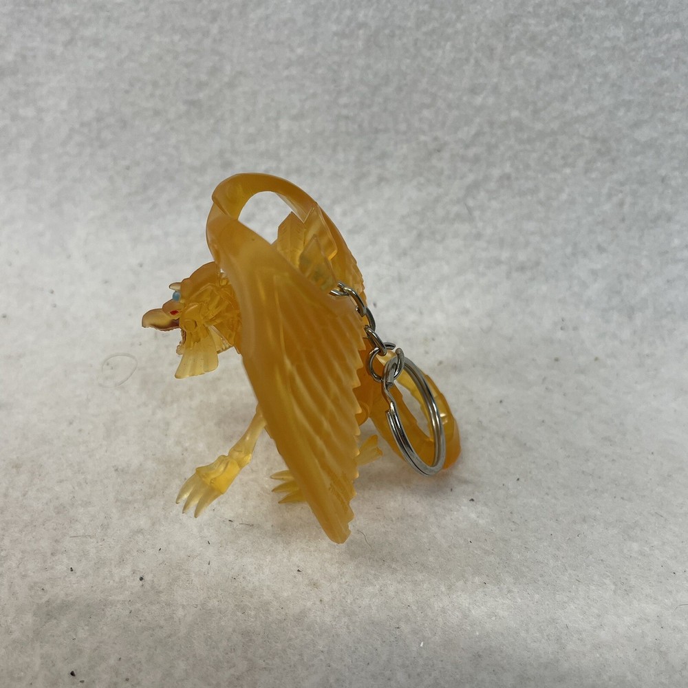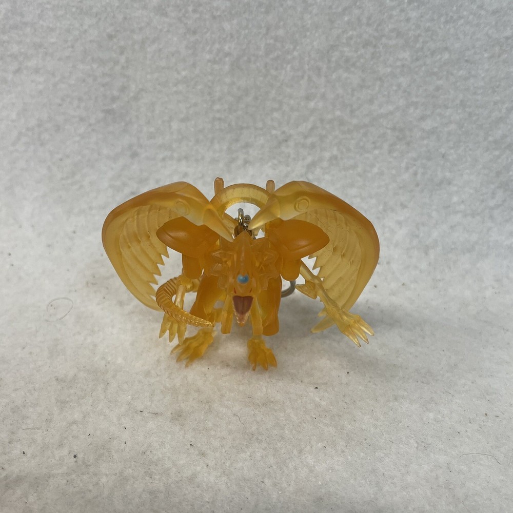 This product is a clear Winged Dragon of Ra keychain from the Yu-Gi-Oh! franchise. It is a hanger figure exclusive to the Yu-Gi-Oh! series and is not a modified item. The keychain is a collectible animation merchandise item and is part of the Yu-Gi-Oh! TV show.