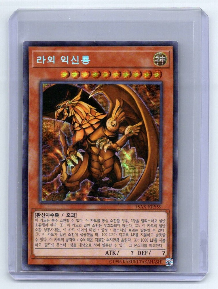 Yugioh Korean (15AX-KRY59) - The WInged Dragon of Ra (Prismatic Secret Rare)(NM) Follow me on IG: @PinkCape @PinkCapeCollectibles OUR BRICKS & MORTARS STORE LOCATED IN 1150 HARBOR BLVD STE 118 ANAHEIM, CA 92801 UNITED STATES WE ARE INSIDE BUBBLESCREEN WE ALWAYS BUY & SELL & TRADE