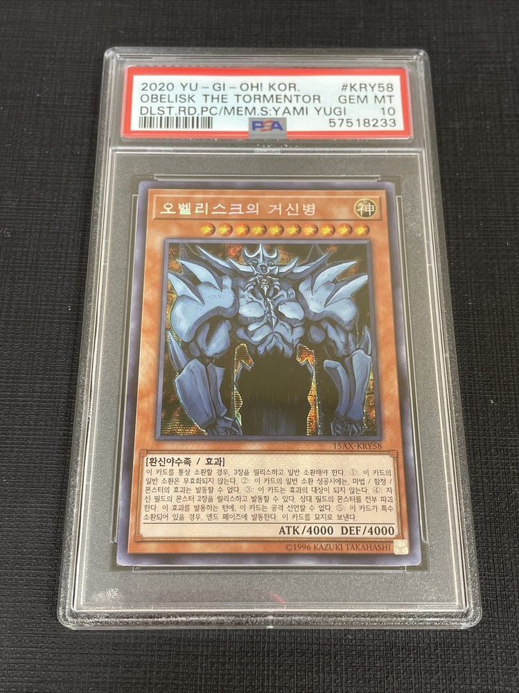 Yugioh Korean Obelisk The Tormentor PSA 10 15AX-KRY58 GEM MINT.