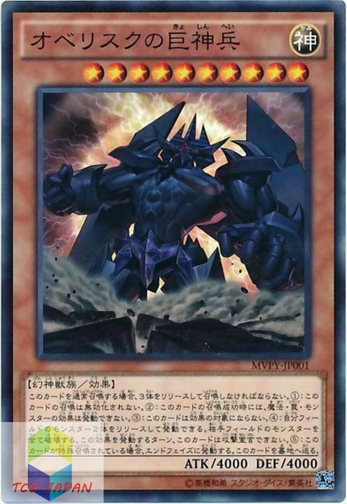 This Yugioh Obelisk the Tormentor card is a must-have for collectors! The Japanese version looks stunning, and the condition is fantastic—near mint with minimal wear. Shipping was smooth, and the seller provided great service. Perfect for serious duelists who want an authentic piece for their deck!