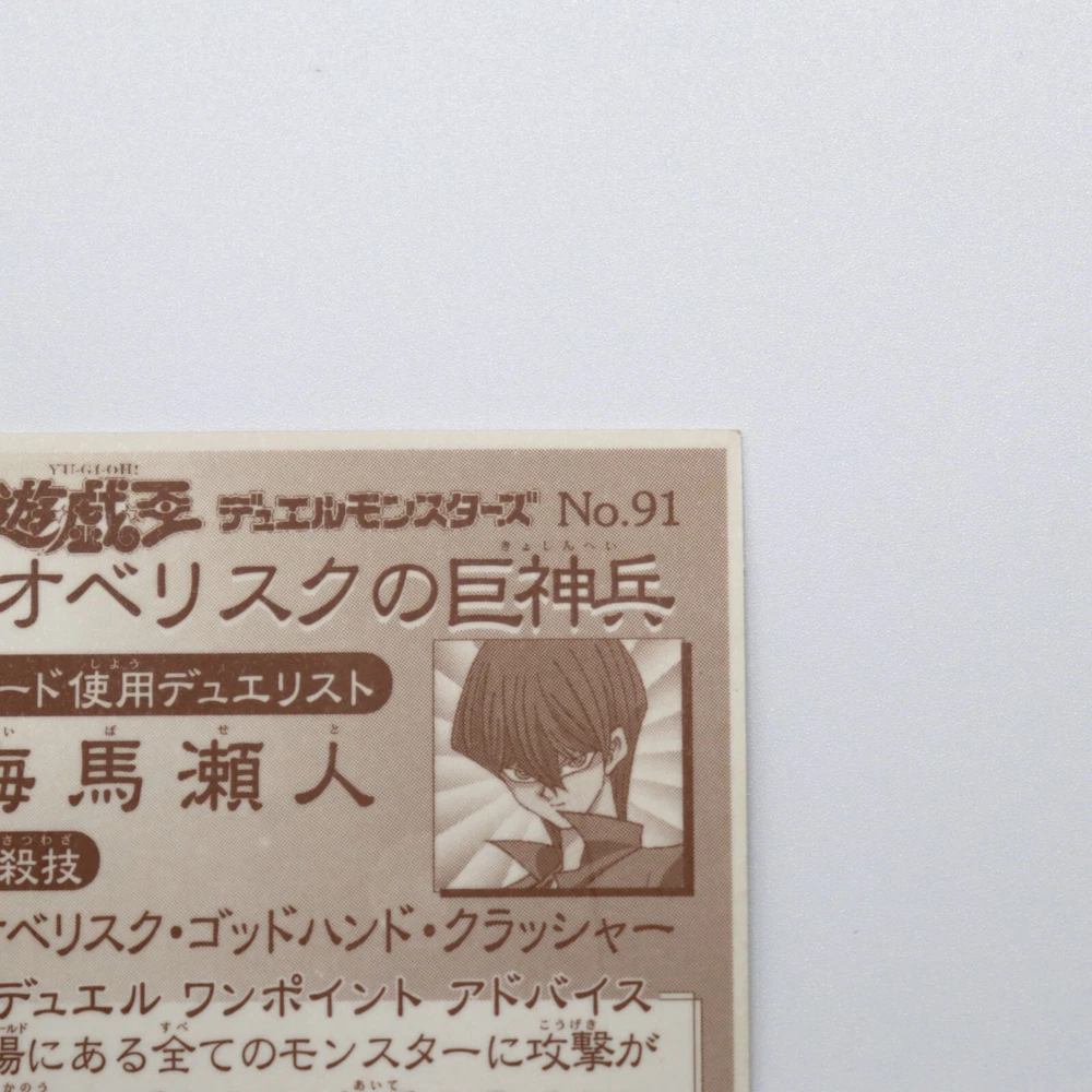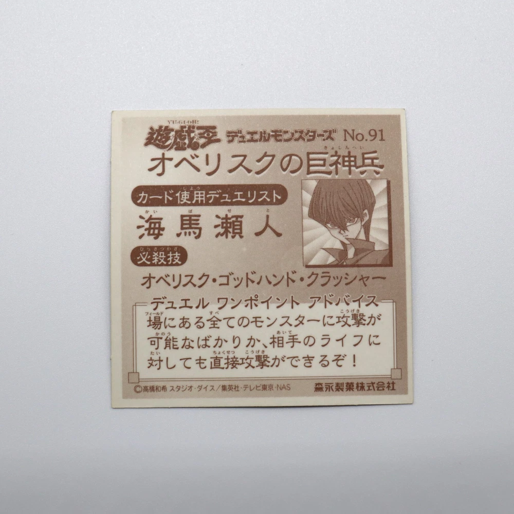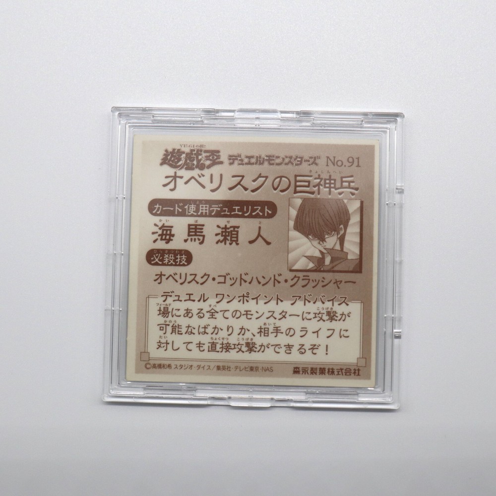 Free eBay listing template designed by dewiso.com Yugioh! No.91 Obelisk the Tormentor Sticker Brand : Yugioh Year : 1990~2000s Made : Japan Manufacturer : Morinaga Appurtenance : Sticker sleeve, P rotective case (85% UV Cut ) . Size : 51 x 51 mm (Case 62 x 62 mm) Details It will be a sticker that started broadcasting around 1998. This sticker was an appendix of sweets. There are only stickers written in Japanese. Popular monsters and stickers in good condition are expected to decrease in number and increase in price. Condition Used. (Look at picture) Contact us We can be contacted at any time through eBay messages if you have any questions, comments or product requests. We will respond to you within 24 hours and do our best to help you out. Payment Please make payment within 4 days after auction is finished. Shipping Shipping method is EMS. Shipping is only available to the address registered in eBay Buyer Import duties, taxes and charges are not included in the item price or shipping charges. These charges are the buyer's responsibility. Please check with your country's customs office to determine what these additional costs will be prior to bidding/buying. These charges are normally collected by the delivering freight (shipping) company or when you pick the item up - do not confuse them for additional shipping charges. We do not mark merchandise values below value or mark items as "gifts" - US and International government regulations prohibit such behavior. Free eBay listing template designed by © dewiso.com .