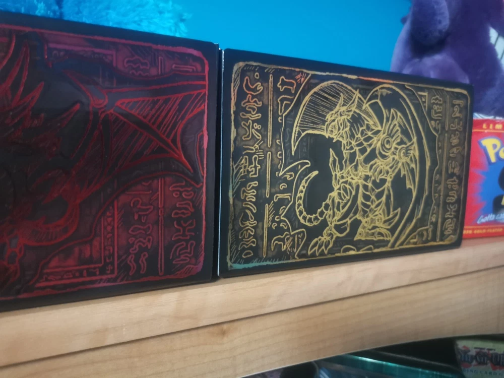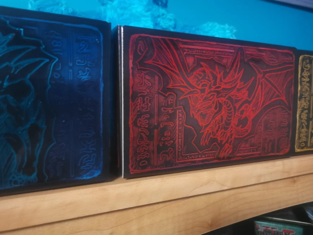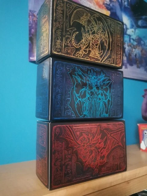 Yugioh empty boxes ocg God boxes. Stunning artwork covers every side of these impressive boxes. My favorite is slifer, but all three are truly eye catching. Any yugioh fan should be proud to add these to their collection! Add the awe-inspiring presence of the Egyptian gods obelisk the tormentor, slifer the sky dragon, and the winged dragon of ra to your collection today! If you have any questions, just ask!