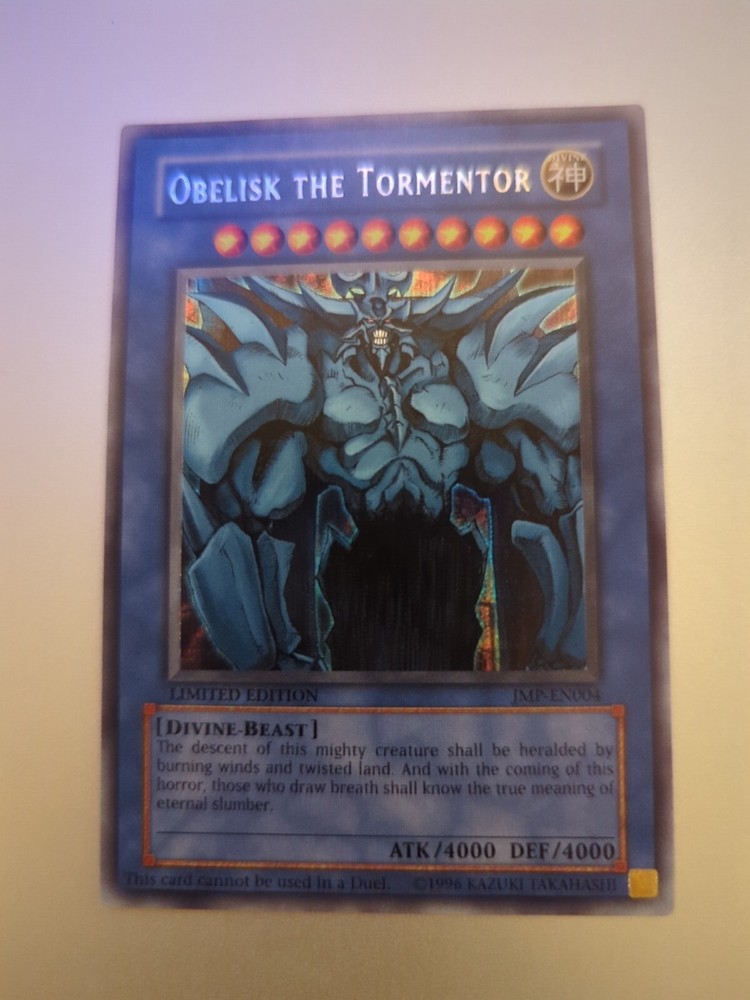 Yugioh Obelisk The Tormentor JMP-EN004 Secret Rare Limited - NM NM: Near Mint or better Card shipped in a top loader and in a bubble mailer