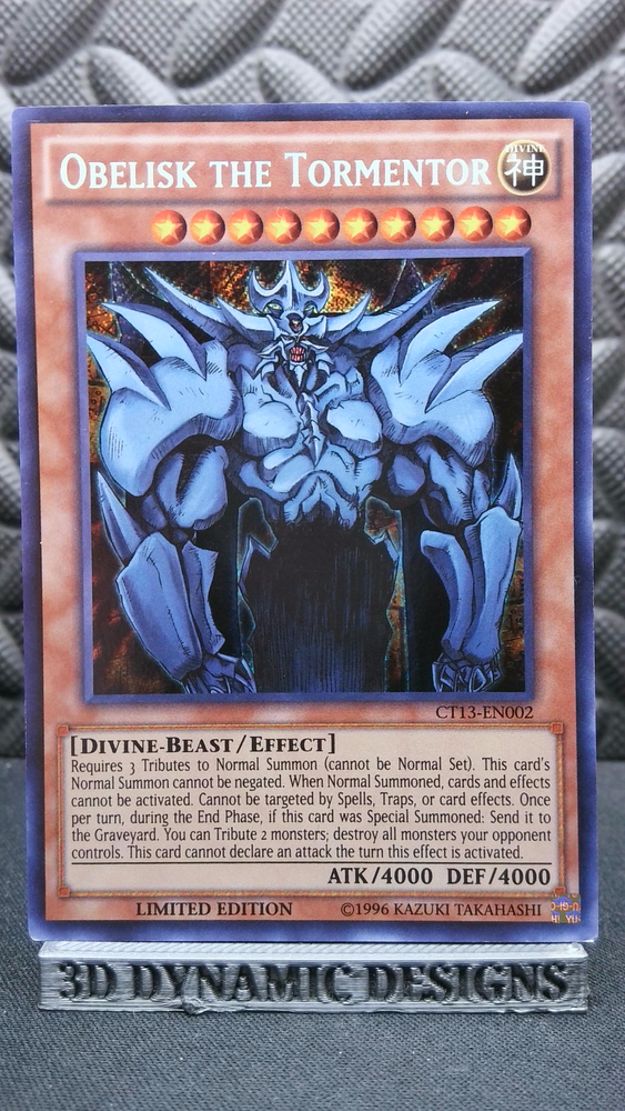 | Yugioh Obelisk the Tormentor CT13-EN002 Secret Rare 2016 Mega Tins NM 🔥 | Card pictured is actual card that will be shipped Cards will come penny sleeved securely placed inside top loader and well protected. Purchases UNDER $20 will be shipped with eBay standard envelope + tracking. Purchases OVER 20 will be shipped USPS First Class Tracking in Padded Bubble Mailer. Will ship same day if possible or next business day at latest. International sales are shipped using eBay Global Shipping Program All payments must be made within 4 days to avoid cancellation. Please contact us for any questions or concern and check out other listings NM M Near Mint/Mint Condition NM Near Mint Condition NM- Near Mint - In between Near Mint and Very Light Play VLP Very Lightly Played Condition LP Lightly Played Condition PL Played Condition MP Moderately Played Condition DMG Damaged Condition