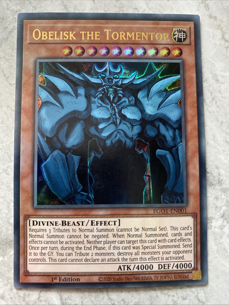 Obelisk the Tormentor - EGO1 - EN001 - Ultra Rare 1st Edition Egyptian God Deck: Obelisk the Tormentor 1st Edition Singles Thank you for viewing the ad, please see photos for condition. If more photos are required, please don’t hesitate to contact. Goods will be sent via Auspost. Happy shopping and thanks for viewing.