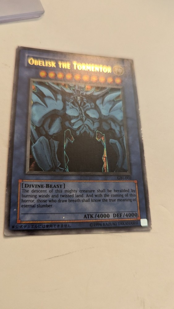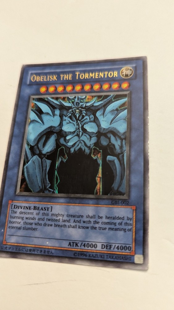 Yugioh! Obelisk the Tormentor GBI-002 Secret Rare . Condition is Ungraded. Shipped with USPS Ground Advantage.