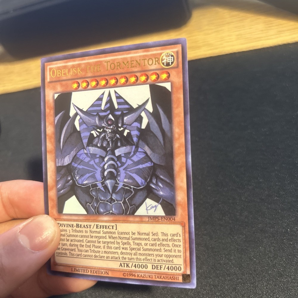 This Yugioh Obelisk card is a must-have for collectors! The condition is fantastic—just minor wear, and it looks amazing. Packaged safely with a sleeve and toploader for protection. Super happy with this purchase!