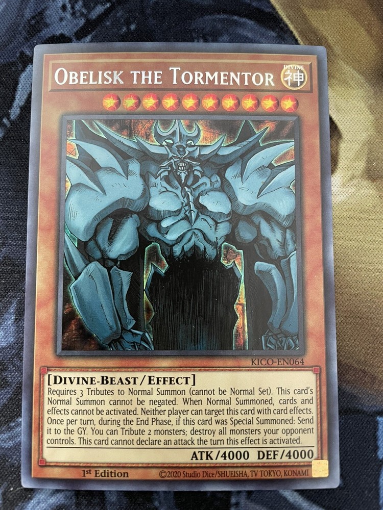 Yu-Gi-Oh Obelisk The Tormentor KICO-EN064 1st Edition Pharaoh's Collector Great Condition, Pack to Toploader Fresh Will invoice with shipping at end of auction for more accurate cost. Will combine listings for one shipping cost. All auctions or combined totals that are over $30 will be shipped tracked and uninsured unless otherwise requested. Shipped using top loader and bubble mailer, if preferred other methods additional cost may be added. Email for more pics if interested.