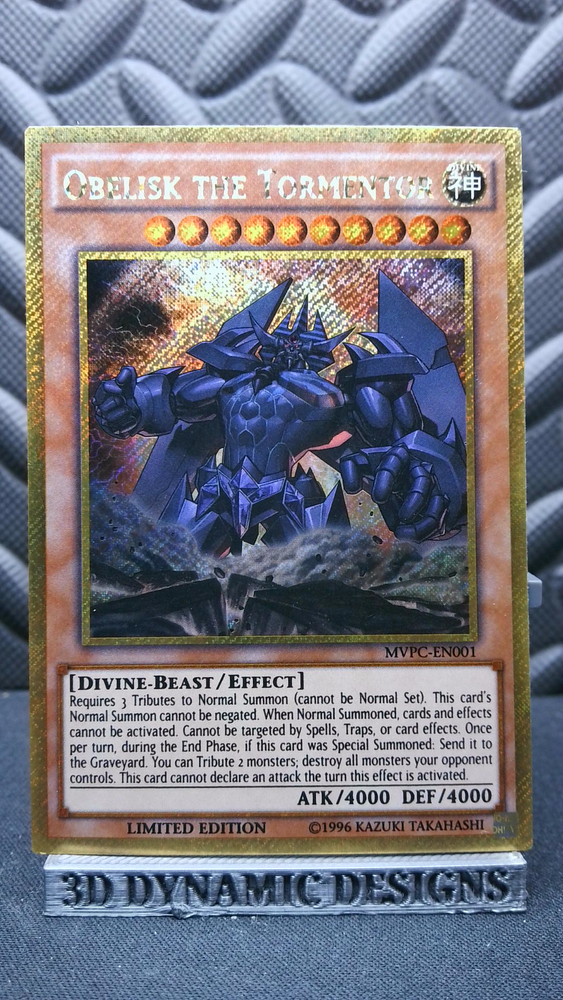 This Obelisk the Tormentor gold edition is stunning—the card arrived in perfect condition, just like the photo! Packaged securely with a sleeve and top loader, it was shipped fast with tracking. Seller is reliable and communication was great. Highly recommend for any Yugioh collector!