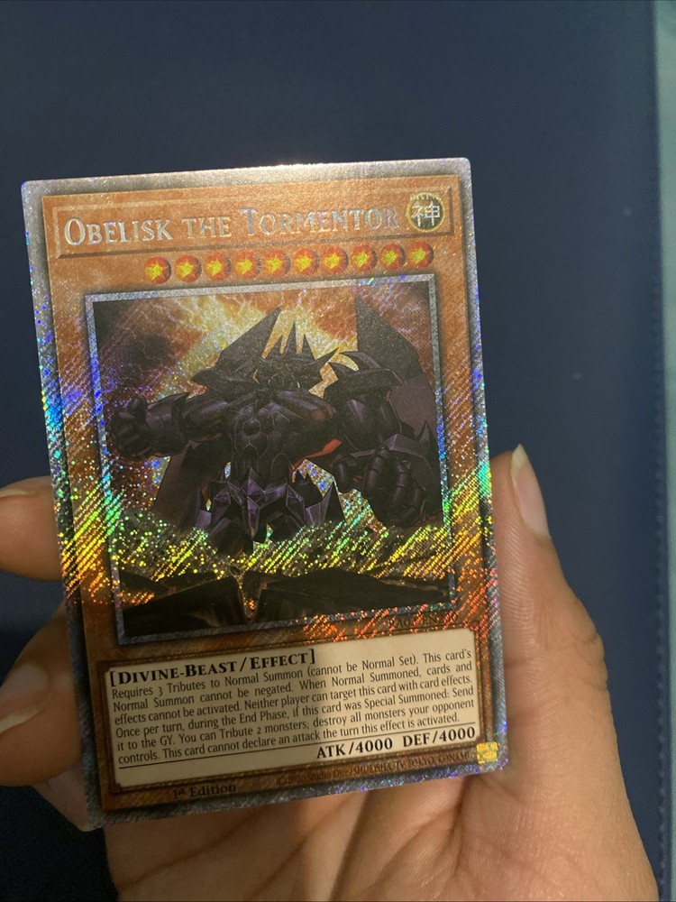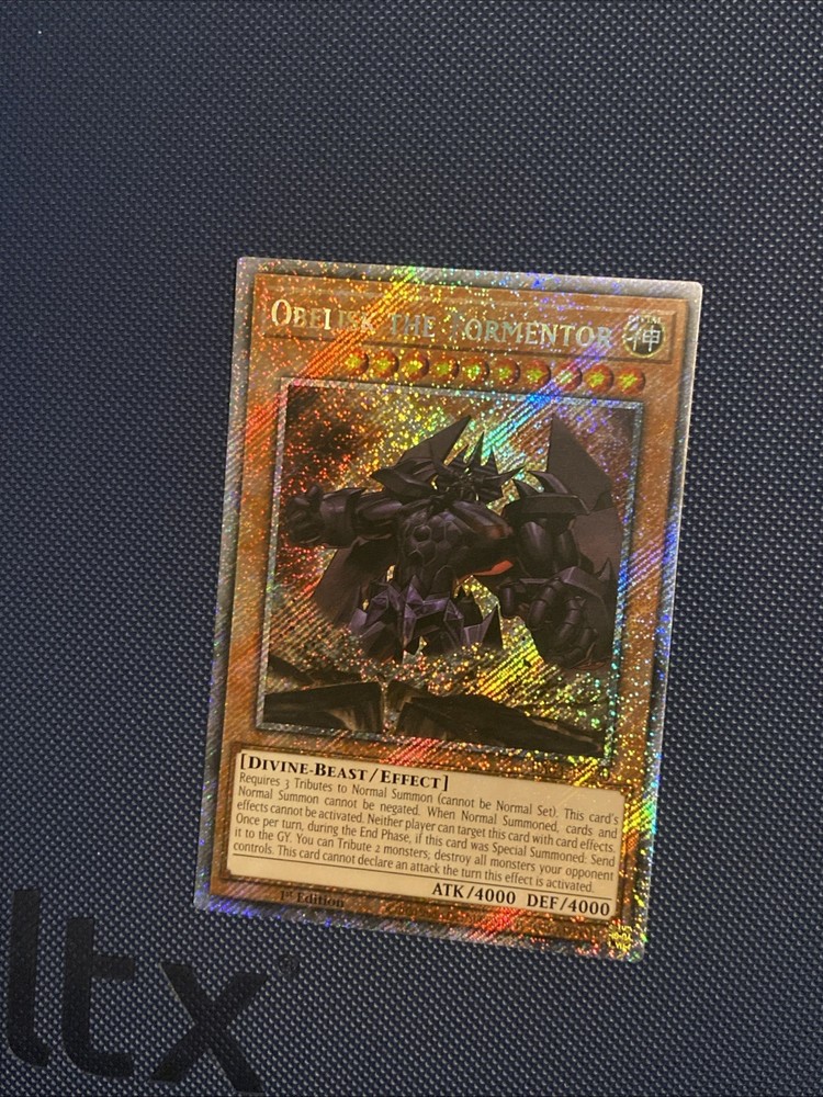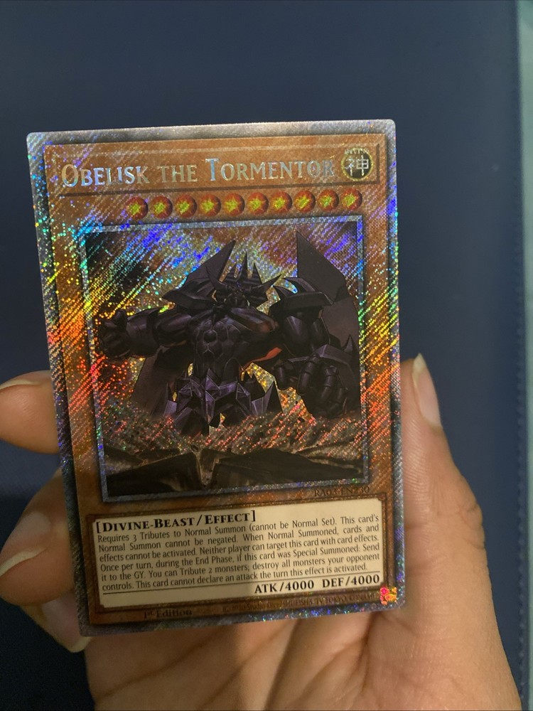 The Yu-Gi-Oh! Obelisk the Tormentor card from the Quarter Century Bonanza set is a rare and sought-after collectible for fans of the game. This Platinum Secret Rare 1st Edition card features a Divine-Beast creature with a high ATK/DEF of 4000 each, making it a powerful addition to any deck. With its unique design and limited availability, this card is a must-have for collectors and players alike.