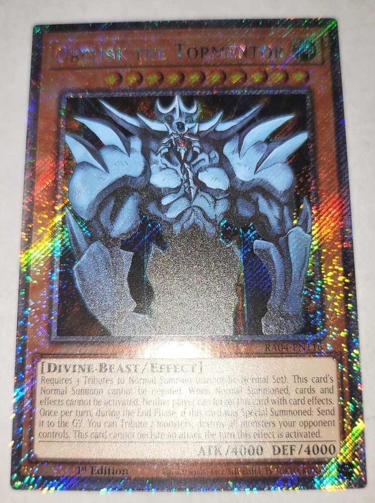 Yugioh Obelisk the Tormentor RA04-EN116 Platinum Secret Rare NM Presale. Condition is Ungraded. Shipped with eBay Standard Envelope for eligible items up to $20....