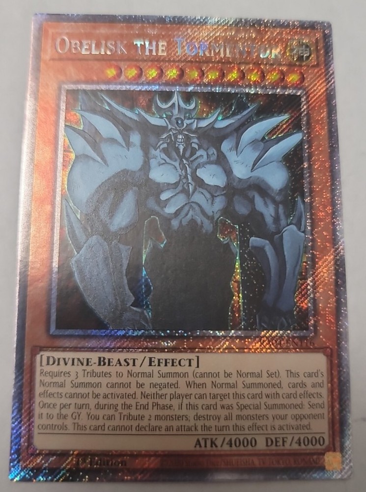This card is absolutely stunning—the platinum secret rare finish makes Obelisk shine like a true god card! Packed securely and arrived quickly, perfect for collectors or duelists. Highly recommend this seller for their great service and mint condition cards!