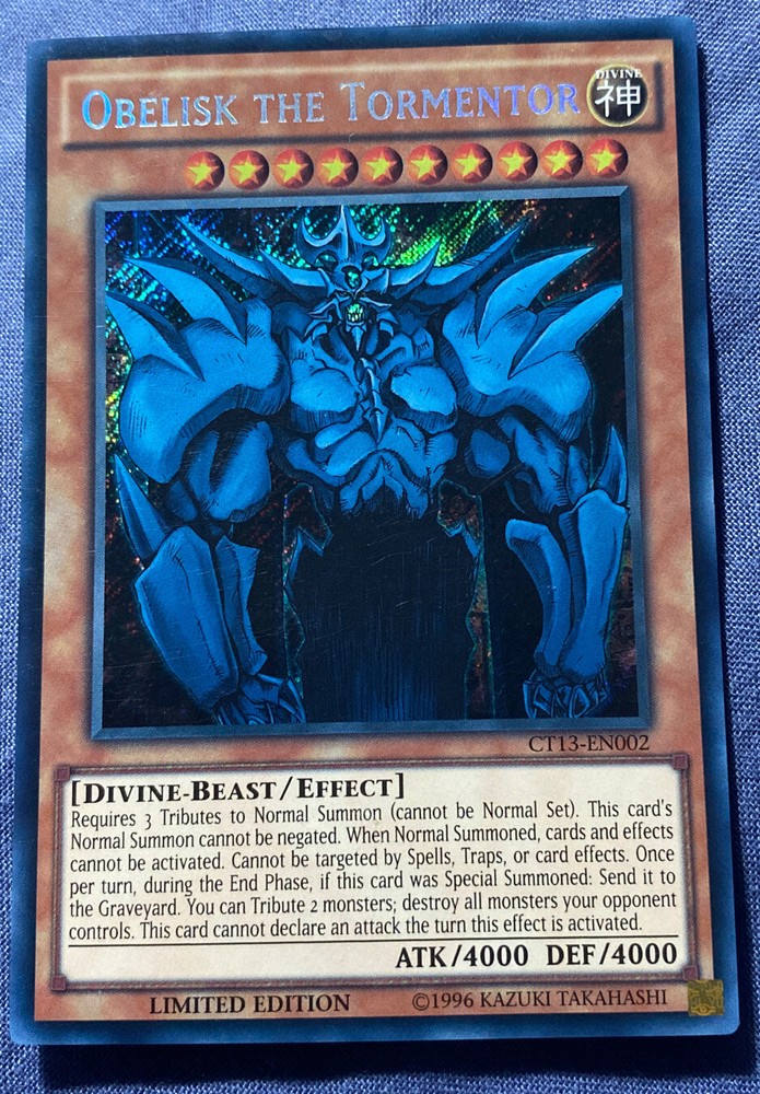 Yugioh - Obelisk the Tormentor - Secret Rare - CT13-EN002 - LIMITED ED - Mint. Mint condition, great collectors item...
