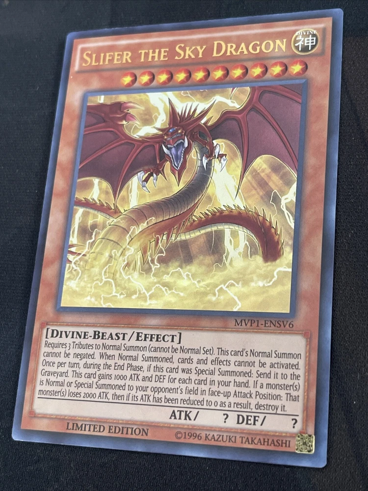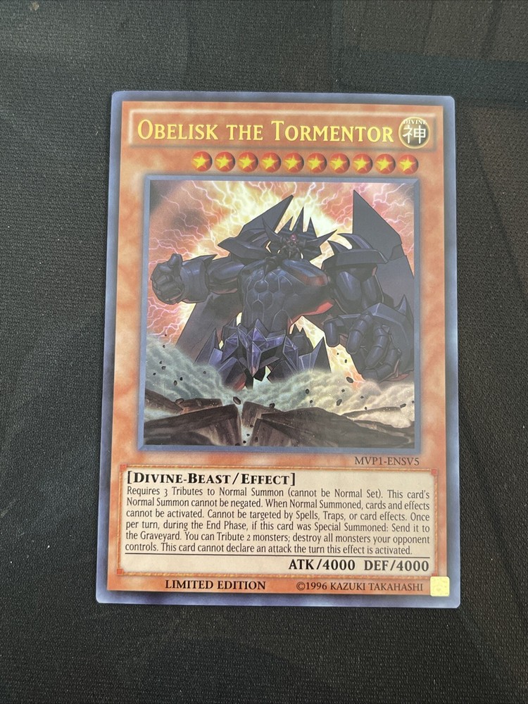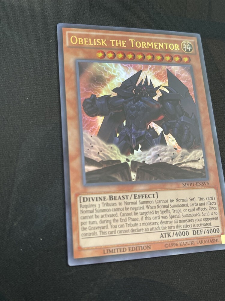 You are purchasing a set of 1x Slifer the sky dragon (mvp1-ensv6) 1x Obelisk the tormentor (mvp1-ensv5) In great condo Ships with care!