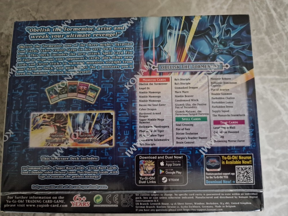 This sealed pack of 8 Yugioh Obelisk the Tormentor Structure Decks is a must-have for any fan of the game. Each deck contains 40 cards, featuring the iconic Obelisk the Tormentor character and a variety of other archetypes. The decks are perfect for collectors or players, with a grade of 10 and a configuration of deck. They are also great for children aged 6 and above, with the game being available in English and manufactured by Konami in Belgium. This pack is a great addition to any collection or a perfect gift for any Yu-Gi-Oh! TCG fan. Any questions please feel free to ask please checkout my other great items