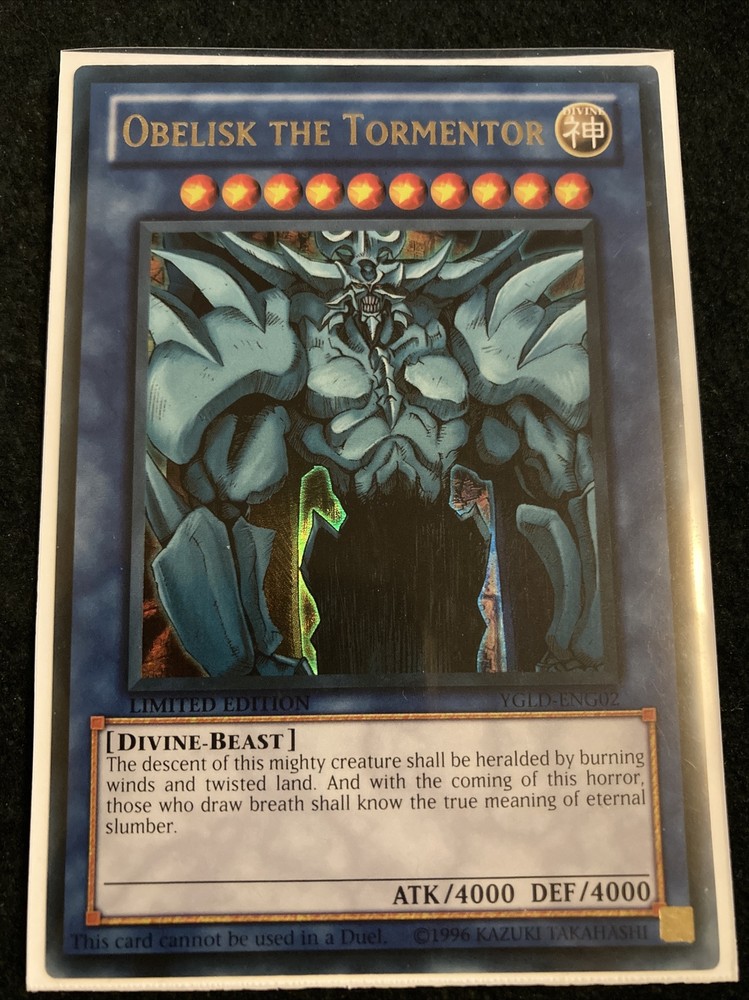 Yugioh Obelisk the Tormentor Ultra Rare NM YGLD-ENG02 Card $ 6.6 Near mint!... Flower Bowl quantity Add To Cart Description Specifics Reviews (3) Description Near mint! Specifics Card Name Obelisk The Tormentor Game Yu-Gi-Oh! TCG Rarity Ultra Rare Reviews Rated 4 out of 5 AleksandrK8f Quick ship good seller, I did wanna provide feedback to use a cardboard to ship mats, got some nasty creased but was ultimately able to fix Rated 3 out of 5 rimshafd8a47 Item was shipped immediately and arrived exactly as described. Packaging was safe and secure! Seller was excellent with communication. Rated 3 out of 5 Divya Ponnusamy Exemplary seller: High quality transaction. Condition of item exactly as described.