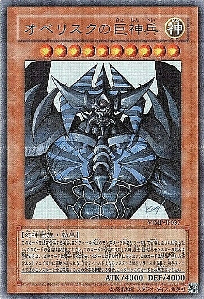 Yugioh Obelisk the Tormentor VJMP-JP037 Ultra Rare Japanese Egyptian God Card