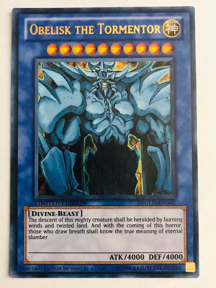 Yugioh! Obelisk the Tormentor - YGLD-ENG02 - Ultra Rare - Limited Edition Near Mint Condition is Used. Shipped with USPS First Class Package.