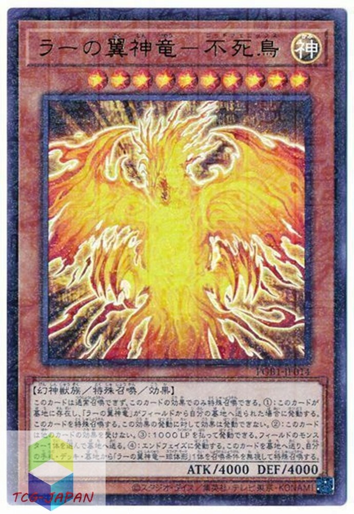This Yugioh Winged Dragon of Ra Immortal Phoenix card is an amazing addition to any collector’s deck! The Japanese version looks stunning, and the condition is fantastic—near mint with minimal wear. Fast shipping and great packaging make this a smooth purchase. Highly recommended for serious duelists and collectors!