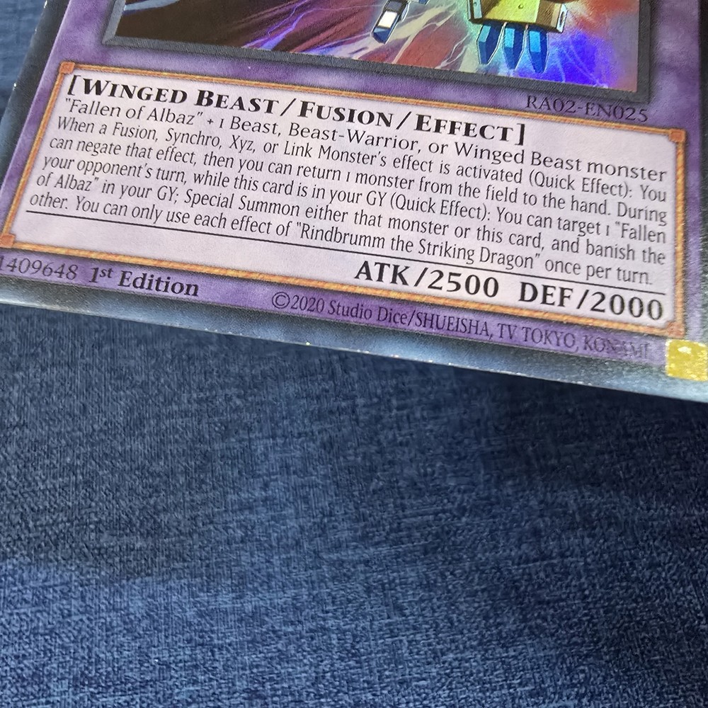 For sale is the pictured yugioh card Rindbrumm the Striking Dragon Set Number RA02-EN025 1st Edition Ultra Rare in Lightly Played/Good Condition....
