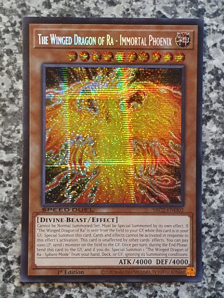 SBC2-END02 The Winged Dragon of Ra - Immortal Phoenix Prismatic Secret Rare 1st Edition Speed Duel Battle City Finals Condition MINT