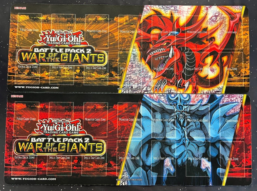 You are bidding on a Set of 2 Yugioh Battle Pack 2 War of the Giants Playmats! ! This listing is for: 1x Slifer the Sky Dragon Playmat 1x Obelisk the Tormentor Playmat Shipping is FREE on this item in the United States!!! Any purchases under $15 will be shipped First Class, Letter in a standard envelope. All purchases above $15 will be shipped First Class, Parcel in a padded envelope. All cards will be shipped in sleeves and top loaders. Please allow 2-3 business days handling time. Make sure to check out our other listings for all of your favorite Trading Card Games! Thanks for shopping at Yeti Gaming!
