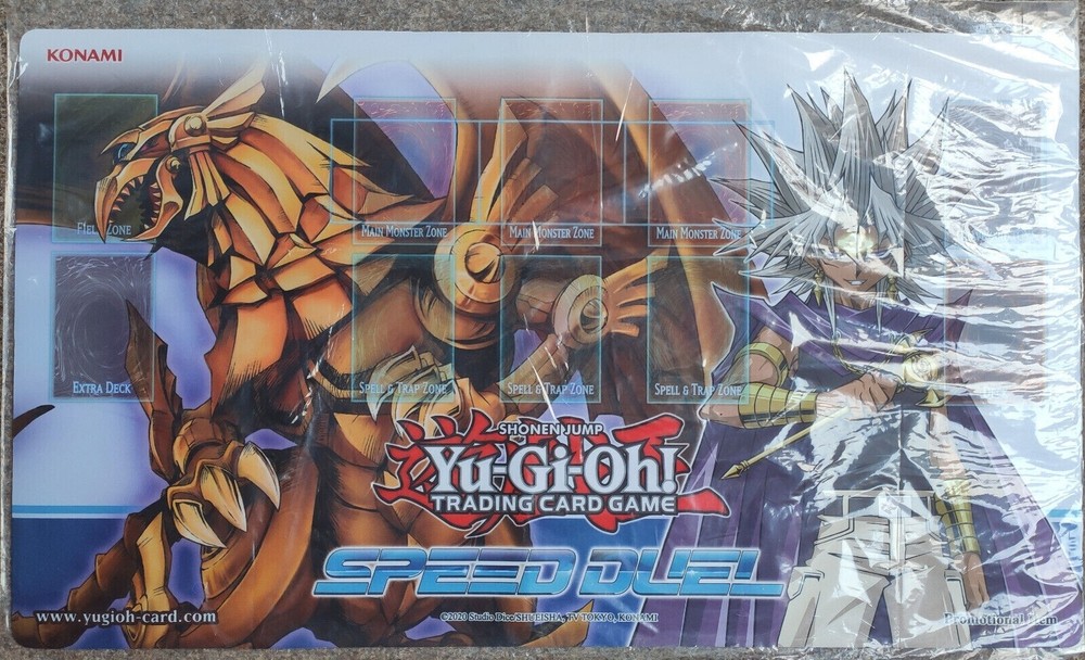 You are buying a rare Speed Duel "Marik & The Winged Dragon of Ra" Win-A-Mat Playmat PLAYMAT IS STILL IN ITS ORIGINAL PACKING Playmat will be shipped with priority mail in a protected envelope. Return letter will also be provided for additional protection. Shipping cost 20.00$ for the first item and 0.5$ for each additional purchase. Shipping inside Europe takes about 7 days, on other continents about 14-28 days