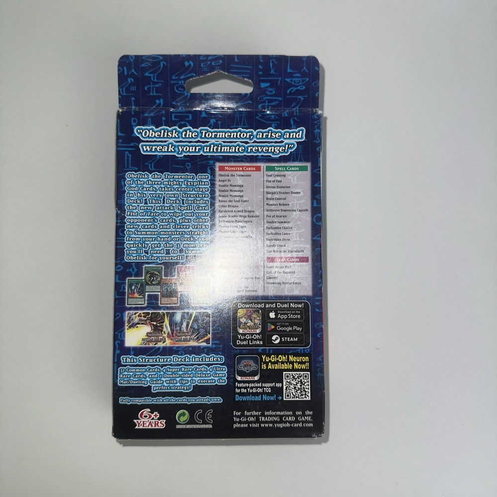 This Yugioh Structure Deck features Obelisk the Tormentor and includes 40 cards in Japanese size. Manufactured by Konami in 2020, this deck is designed for players aged 6 and up, with a focus on the powerful Obelisk the Tormentor archetype. The deck is in English and comes sealed in its original packaging, offering fans of the Yu-Gi-Oh! TCG a ready-to-play set for strategic dueling adventures.