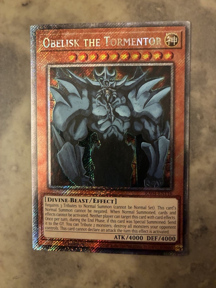 Yugioh! TCG - Obelisk the Tormentor - Platinum Secret Rare - RA04-EN116 - Quarter Century Stampede - 1st Edition - NM