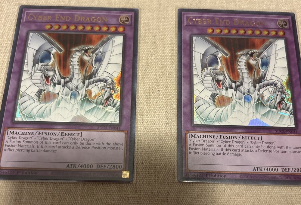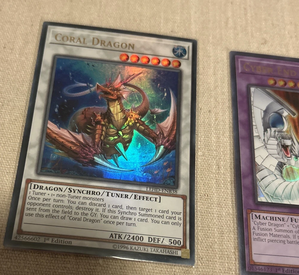 Great collection of dragon cards. Coral Dragon LEHD-ENB38 Cyber End Dragon SDCS-EN041 (2) Red-Eyes B. Dragon JMP-002 Blue-Eyes Ultimate Dragon LDK2-ENK40 Cyberdark End Dragon SDCS-EN044 The Winged Dragon of Ra LDK2-ENS03