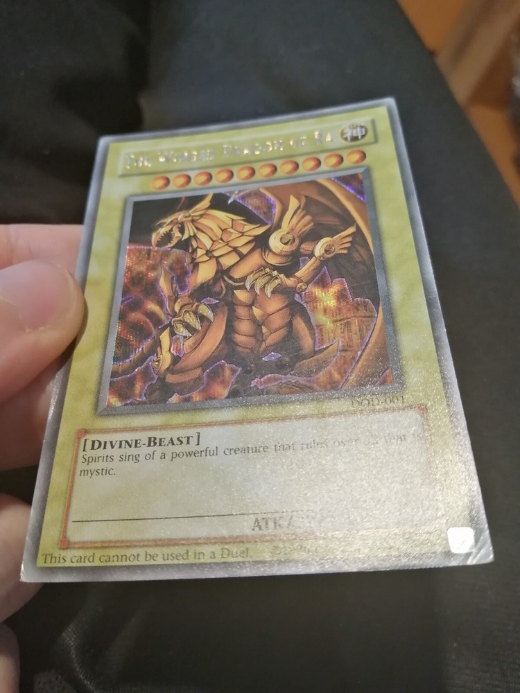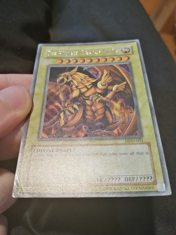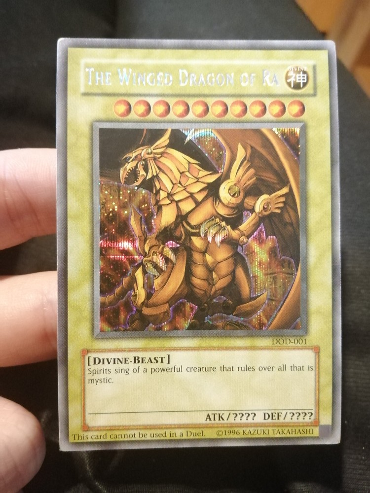 Yugioh The Winged Dragon of Ra DOD-001 Secret Prismatic Rare Promo Condizioni come da foto. Gli eventuali difetti più evidenti sono stati evidenziati The card's conditions are as seen in the pic. The main flaws have been highlighted, if any Per altre foto o altre informazioni sono a disposizione/For other photos or info please ask