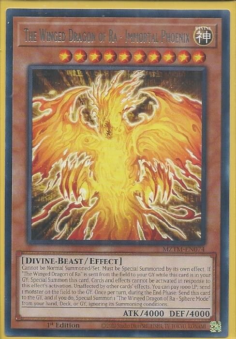 This card is absolutely stunning! The Immortal Phoenix Rare treatment makes The Winged Dragon of Ra shine with an incredible holographic effect. The colors pop beautifully under light, making it stand out in any collection. Super happy with this purchase—it arrived well-protected and in perfect condition. Definitely a must-have for serious Yugioh fans!
