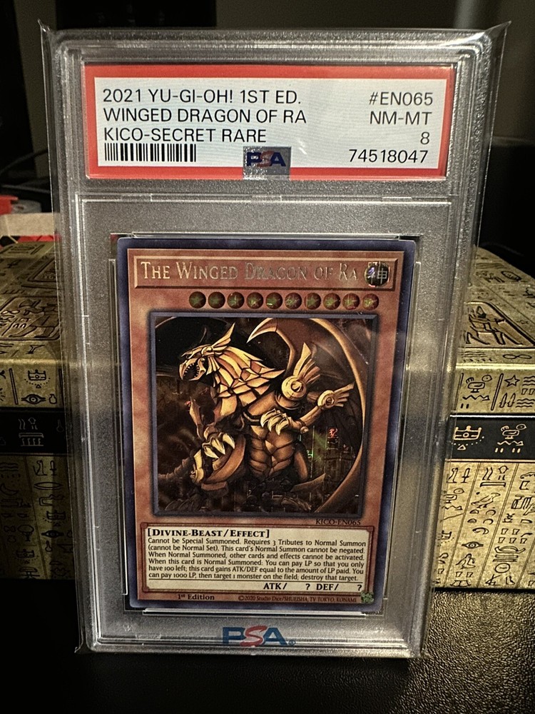Yugioh - The Winged Dragon of Ra KICO-EN065 1st Secret Pharaoh Rare PSA 8....