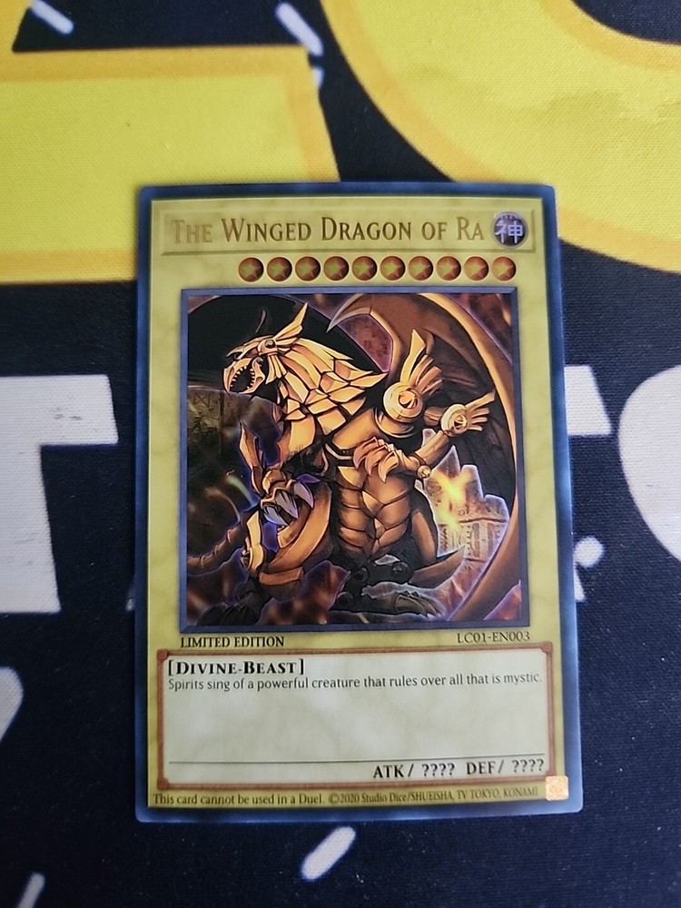 Yugioh! The Winged Dragon of Ra LC01-EN003 Ultra Rare 25th Anniversary NM $ 0.53 Card is NM... Flower Bowl quantity Add To Cart Description Specifics Description Card is NM Specifics Card Name The Winged Dragon of Ra Features Limited Edition Game Yu-Gi-Oh! TCG Rarity Rare