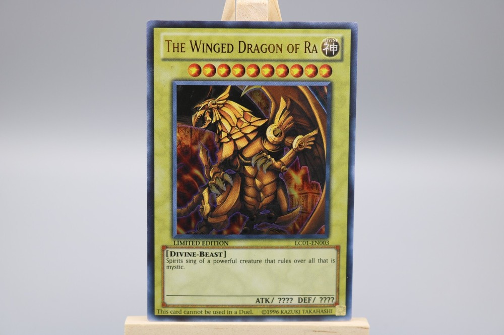 Yugioh! The Winged Dragon of Ra LC01-EN003 Ultra Rare Limited Edition Trading Card In Mint Condition! Free Mystery Cards Included! Enjoy:) -All Trading Cards/Memorabilia That KardK_63 Sell Are In Mint Condition Any Marks, And Or Blemishes Seen In The Images Are Just On The Penny Sleeve Or Top loader Not On The Card Itself, I Personally Guarantee Each Product Is Mint Condition Shop Knowing Your Getting What You Pay For! -Sleep Easy Knowing You Are Getting High Quality Cards/Memorabilia -Shop Knowing That If You Are Not Happy With The Card/Product Returns Are Accepted -All Cards Are 100% Authentic And Have Been Inspected To Insure You Are Getting Top Quality Product At The Lowest Price Possible -We Thank You For Taking Time To Look At Our Products And Even A Bigger Thank You For Buying Them :) -All Orders Are Sent Out In Top Loaders And Are Protected To Insure Safety Of Product SO Worry Free Shipping Your Order Will Arrive Safe And Sound -Enjoy And Happy Collecting